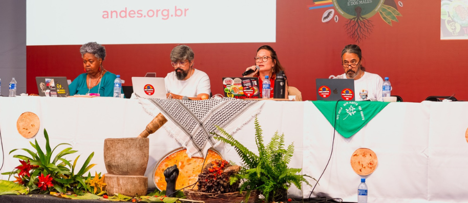 No quarto dia do 44º Congresso do ANDES-SN, realizado na Universidade Federal da Bahia (UFBA), em Salvador, as e os docentes avançaram na aprovação de resoluções do Plano Geral de Lutas, reafirmando o caráter classista e internacionalista da entidade. Na tarde desta quinta-feira (5), os debates abordaram ações estratégicas para o enfrentamento ao imperialismo, aos ataques da extrema direita à categoria docente e para a resistência contra o desmonte dos serviços públicos, entre outros.